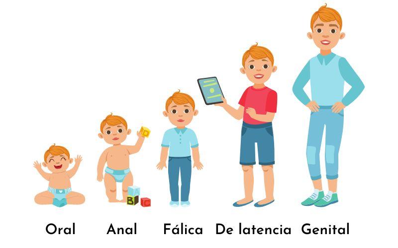 Estas son las etapas propuestas por Sigmund Freud en su teoría del desarrollo humano, en las que la energía sexual o deseo sexual se dirige a diferentes partes del cuerpo. Cada etapa afecta la formación de la personalidad, dependiendo del grado en que se satisfagan las necesidades asociadas a esa etapa. Estas etapas son: